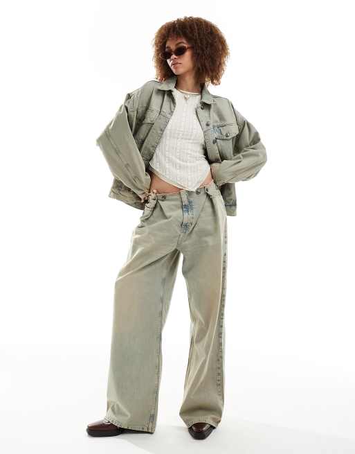 Vaqueros azules holgados con lavado deslucido y cinturilla ajustable de Mango