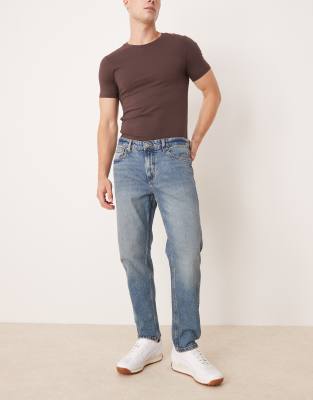 Vaqueros de corte tapered con lavado azul oscuro enjuagado de Mango