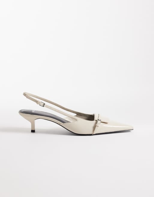 Zapatos color avena destalonados de tacón bajo con detalle de hebilla de Mango