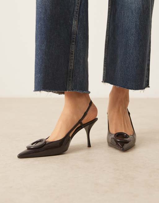 Zapatos marrón oscuro destalonados de tacón con puntera fina de Mango