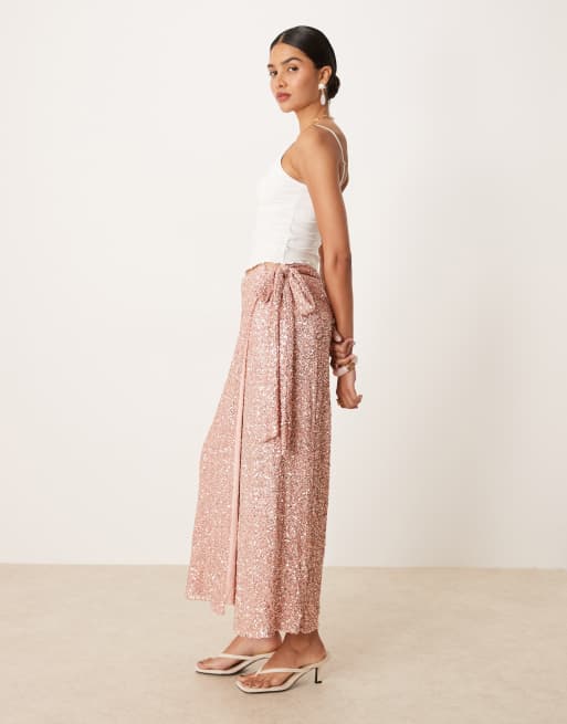 Falda midi rosa rubor cruzada con abalorios de Maya