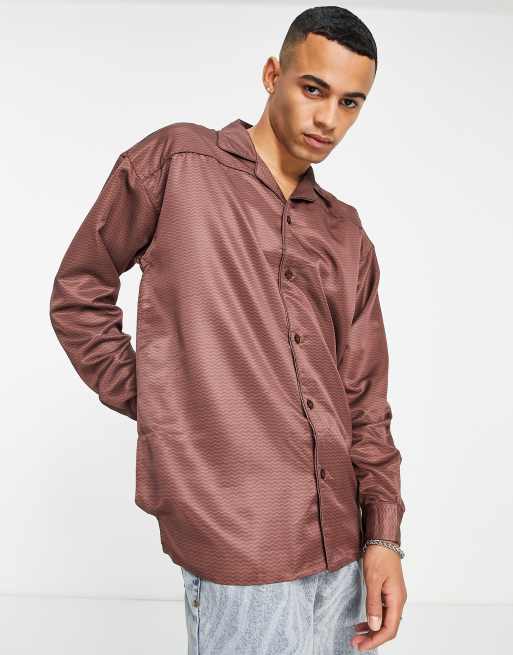 Camisa marrón oscuro de manga larga con estampado geométrico y solapas de Mennace