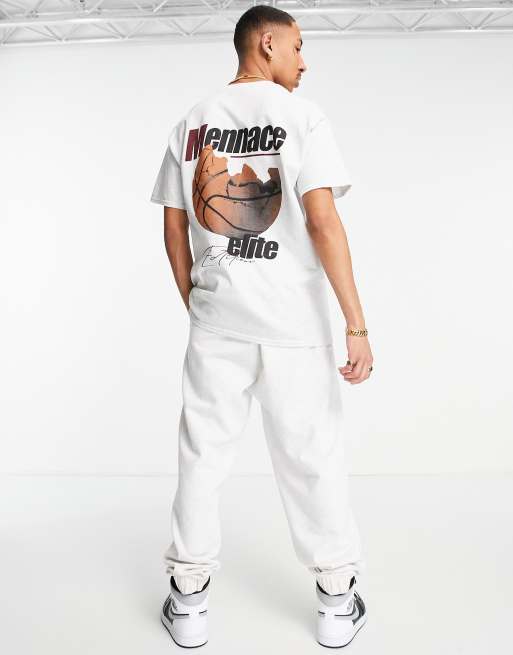 Camiseta gris extragrande con estampado de baloncesto de Mennace