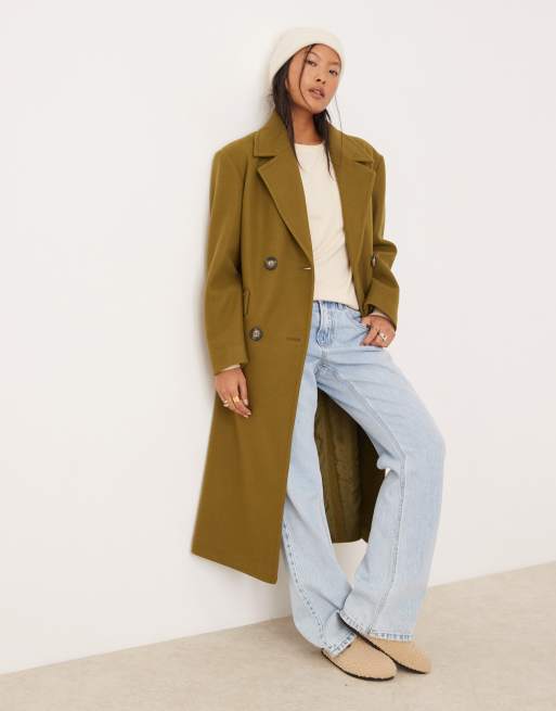 Abrigo de vestir caqui cruzado con cinturón de Miss Selfridge Petite