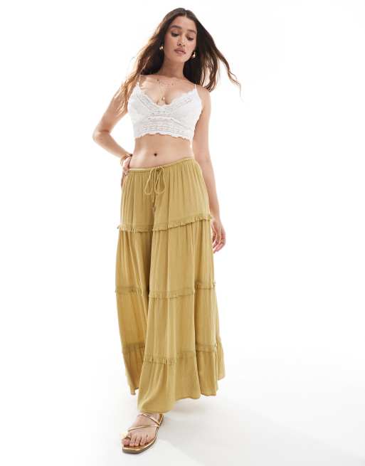 Falda larga caqui claro escalonada de Miss Selfridge