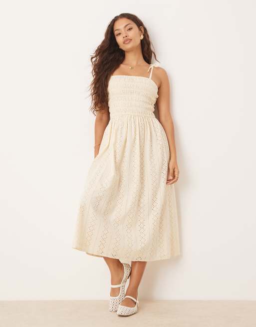 Vestido largo amarillo pastel de tirantes con diseño bordado de Miss Selfridge Petite