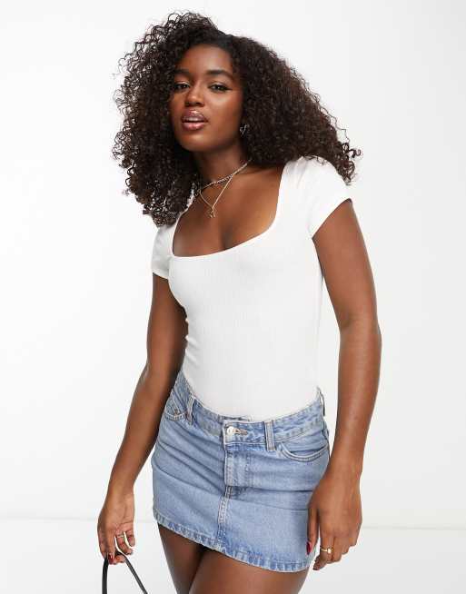 Body blanco con escote cuadrado de canalé de Miss Selfridge