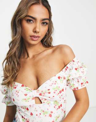 Body multicolor con escote Bardot anudado de Miss Selfridge