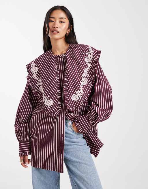 Camisa morada a rayas extragrande con cuello de solapas de Miss Selfridge
