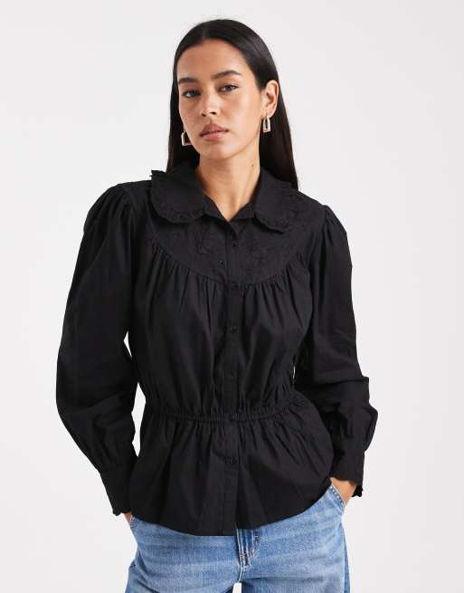 Camisa negra con sobrefalda y abalorios de popelina de Miss Selfridge