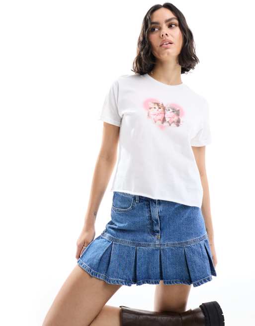 Camiseta blanca con estampado gráfico de gatos de Miss Selfridge