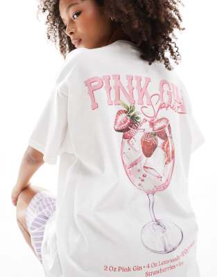 Camiseta blanca extragrande con estampado "Pink Gin" de Miss Selfridge