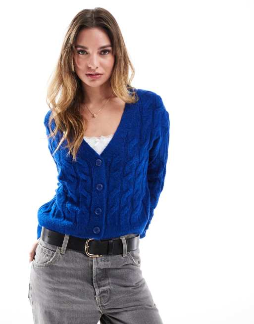 Cárdigan azul luminoso de punto de ochos grueso de Miss Selfridge