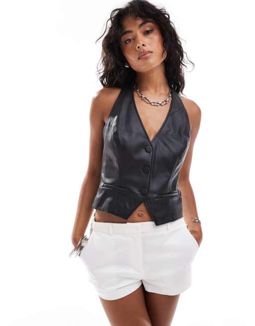 Chaleco con cuello halter de cuero sintético de Miss Selfridge