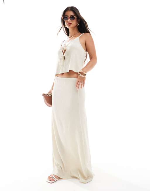Falda larga color piedra de tejido texturizado de Miss Selfridge