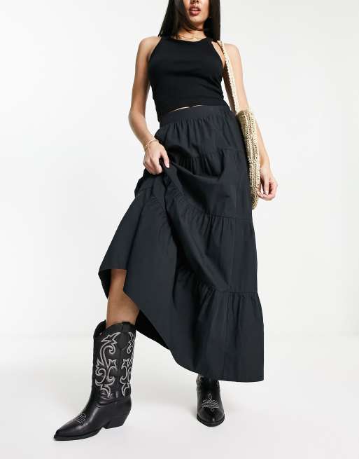 Falda larga negra escalonada de popelina de Miss Selfridge