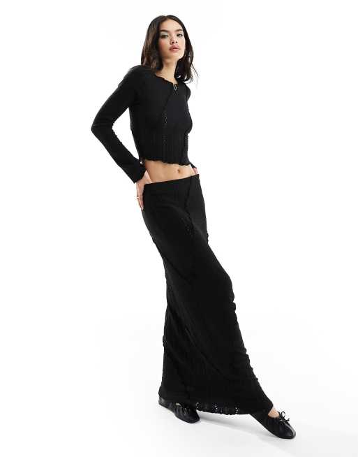 Falda midi negra de tejido texturizado variado de Miss Selfridge (parte de un conjunto)