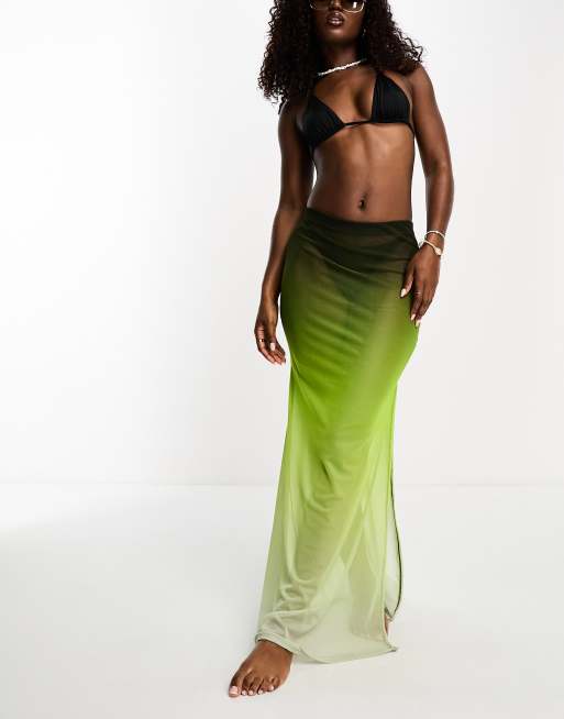 Falda playera larga verde con diseño degradado de malla de Miss Selfridge
