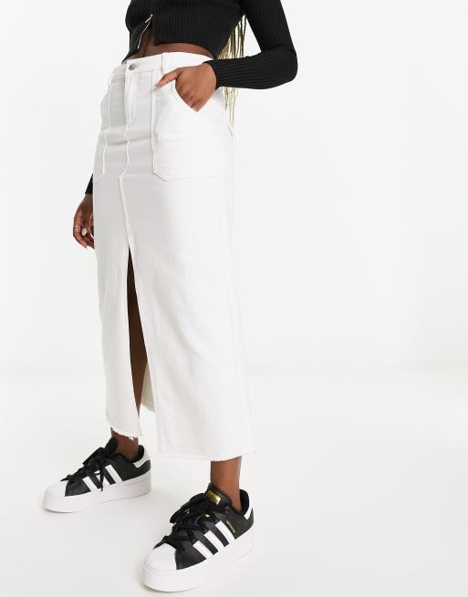 Falda vaquera larga color crudo con detalle de bolsillo de Miss Selfridge