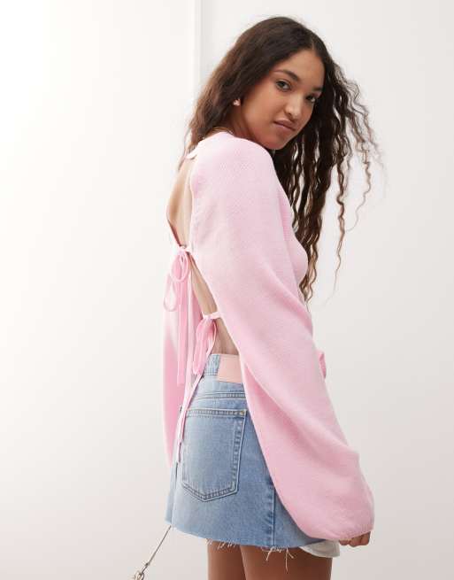 Jersey rosa con espalda abierta con dos lazadas de Miss Selfridge