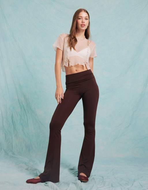 Leggings marrón chocolate de campana y talle bajo con cinturilla plegada de Miss Selfridge