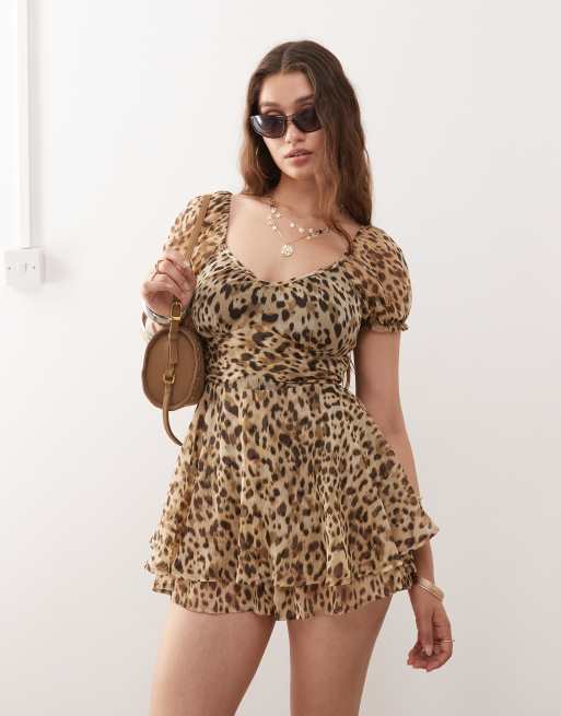 Mono corto con estampado animal y diseño escalonado con volantes de chifón de Miss Selfridge