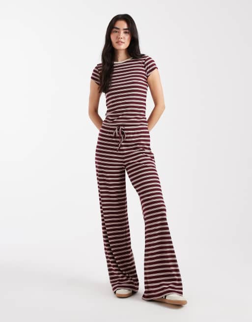 Pantalones burdeos a rayas de pernera ancha de Miss Selfridge (parte de un conjunto)