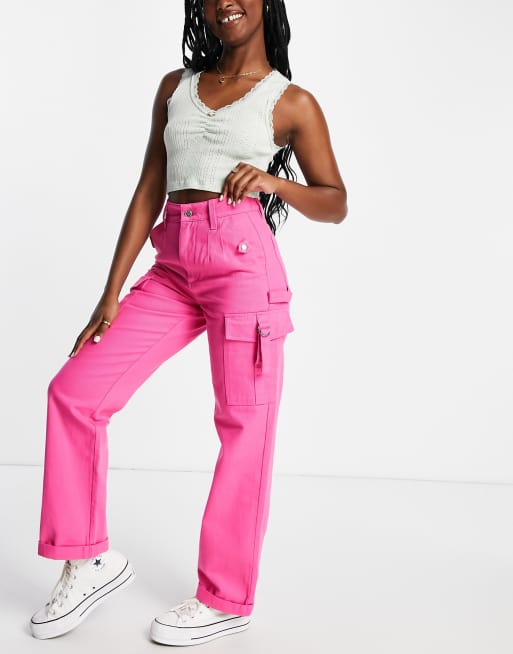 Pantalones cargo rosas de pernera recta de Miss Selfridge