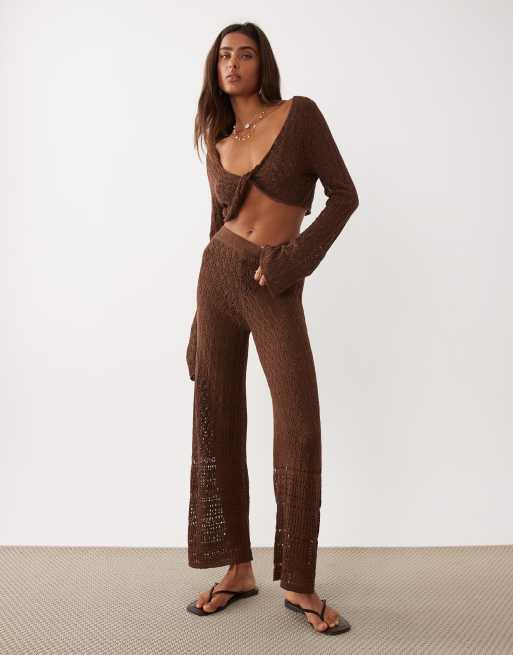 Pantalones marrón chocolate de pernera ancha de croché de Miss Selfridge