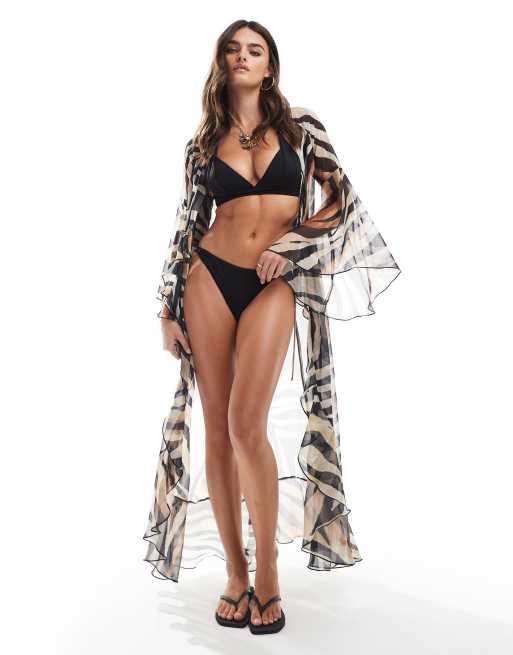 Prenda de playa larga con estampado de cebra de chifón de Miss Selfridge