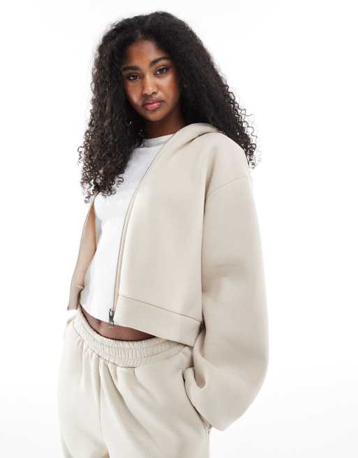 Sudadera color avena extragrande con capucha y cremallera de Miss Selfridge