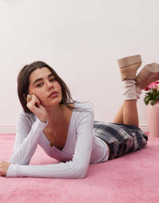 Top azul pálido cruzado de pointelle de Miss Selfridge