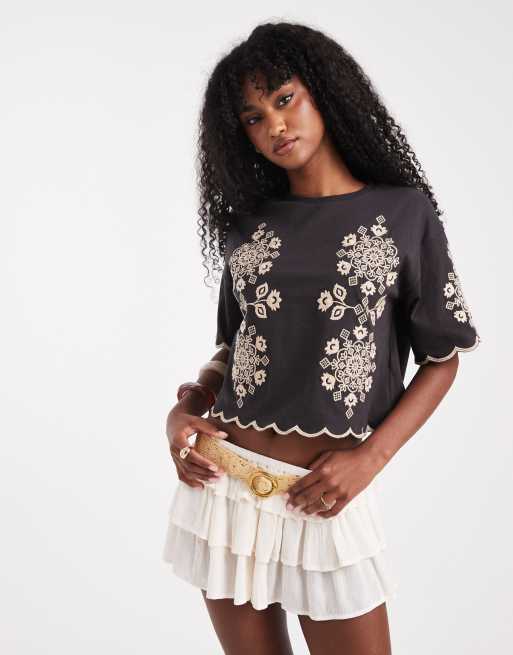 Top gris carbón con bordado floral de Miss Selfridge