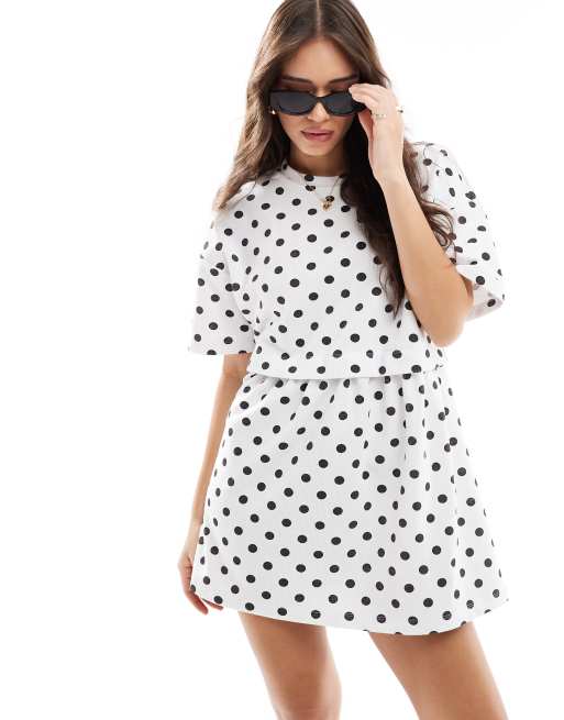 Vestido amplio de manga corta con estampado de lunares y diseño superpuesto de Miss Selfridge