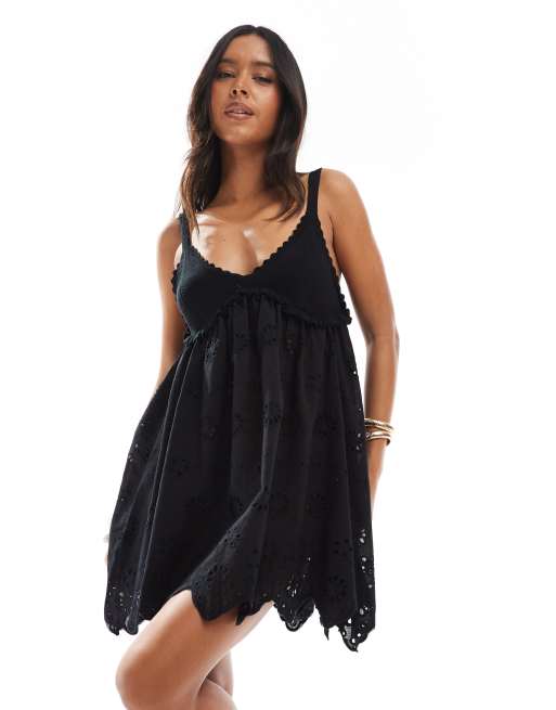 Vestido bordado corto negro con diseño bordado en contraste de punto de Miss Selfridge