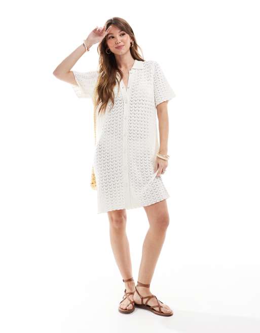 Vestido color crema abotonado estilo polo con diseño en contraste de croché de Miss Selfridge
