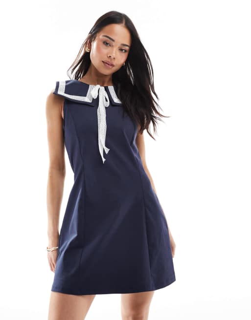 Vestido corto azul marino con cuello marinero de solapas cuadradas de bengalina de Miss Selfridge