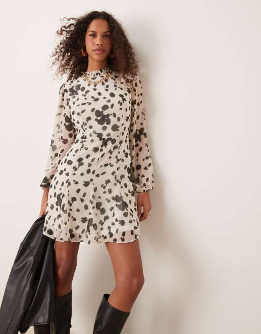 Vestido corto con estampado de lunares difuminados y mangas ángel de chifón de Miss Selfridge