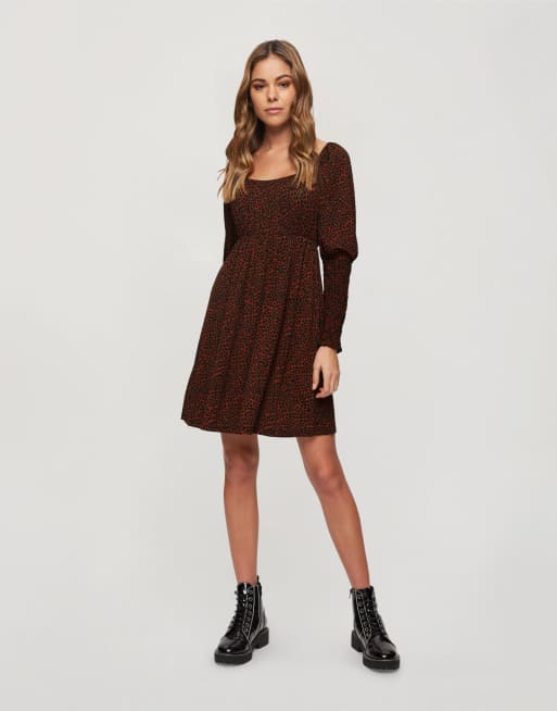 Vestido corto evasé rojo con estampado de florecitas de Miss Selfridge