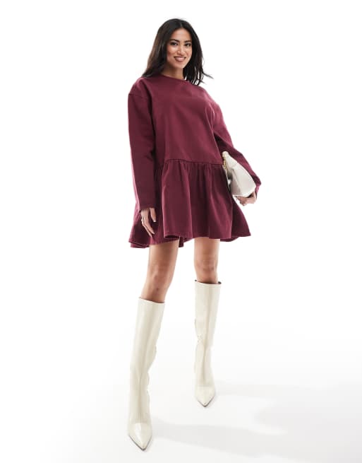 Vestido vaquero estilo camiseta de manga larga con lazada en el cuello de Miss Selfridge