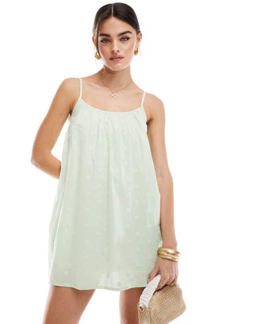 Vestido veraniego corto verde de tirantes con diseño bordado de Miss Selfridge