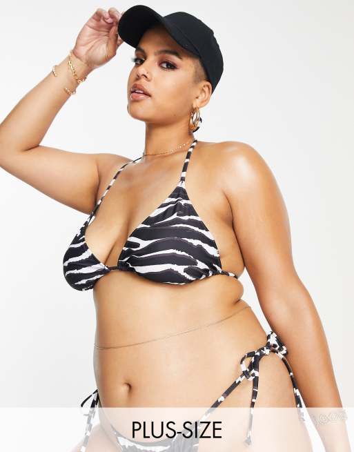 Top de bikini triangular con estampado de cebra de Missguided Plus