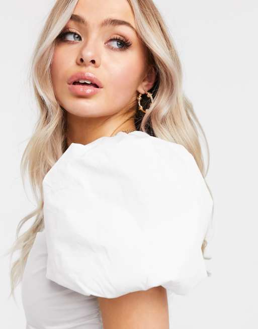 Blusa de popelina con manga abullonada en blanco de Missguided