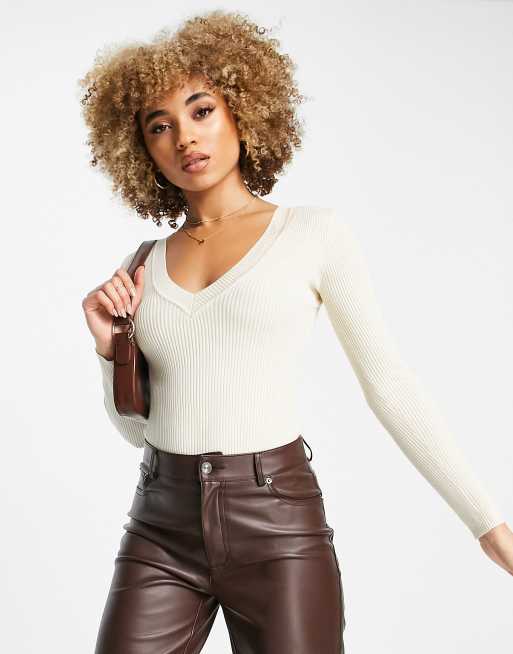 Body color arena con cuello de pico de punto de canalé de Missguided