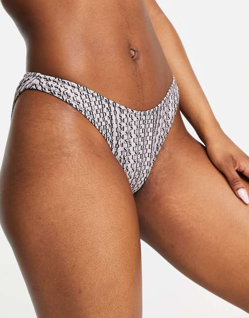 Braguitas de bikini marrón topo con estampado del logo Boomerang de Missguided