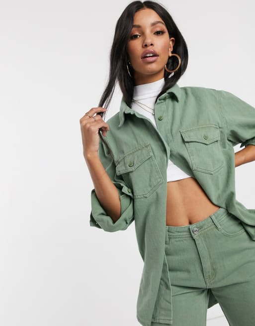 Conjunto de denim en caqui de Missguided