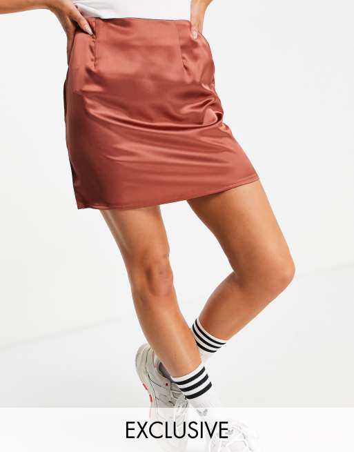 Minifalda color chocolate de satén de Missguided (parte de un conjunto)