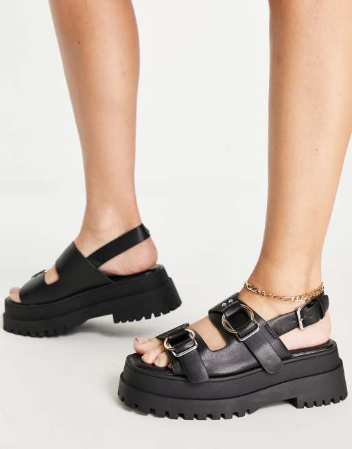 Sandalias negras con suela gruesa y diseño de dos tiras con hebilla de Missguided