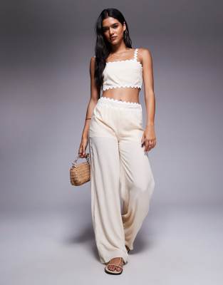 Conjunto beis de pantalones de pernera ancha y top con cuello cuadrado y borde festoneado de tejido efecto lino de Missyempire