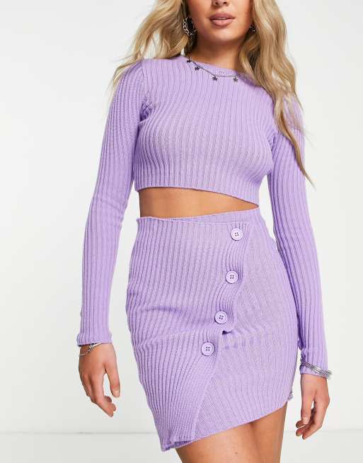 Minifalda violeta con detalle de botones de punto de canalé de Missy Empire (parte de un conjunto)